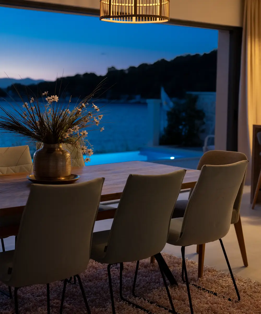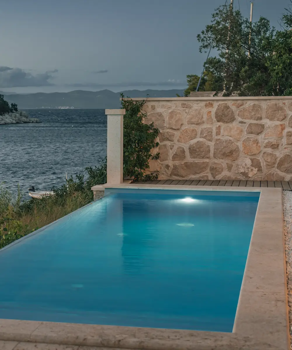 Villa Dajana rests above the Adriatic, offering five peaceful rooms filled with natural light and fresh sea air. A private upper room features its own plunge pool and secluded terrace, while the villa’s main pool overlooks the coastline.
